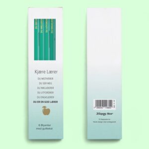 Pakken inneholder 6 HB blyanter i mint med gulltekst.
