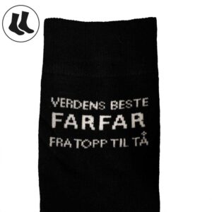 Så i år har vi produsert strømper med den herlige teksten Verdens beste farfar fra topp til tå.